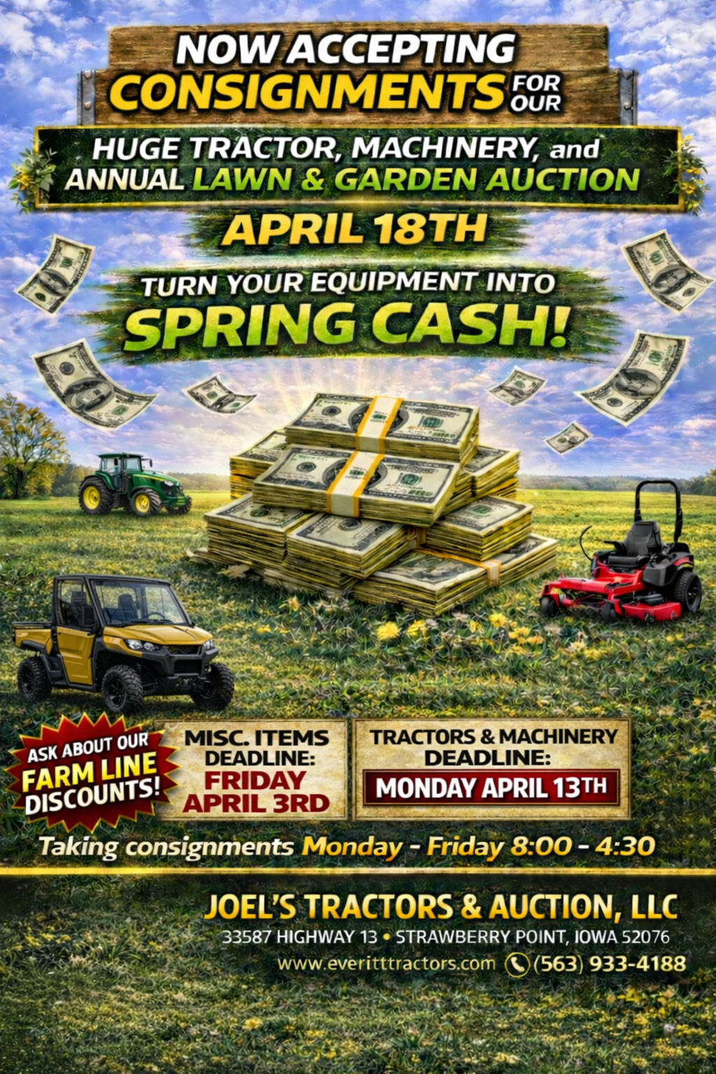 Large Consignment/Annual Lawn and Garden Auction coming soon