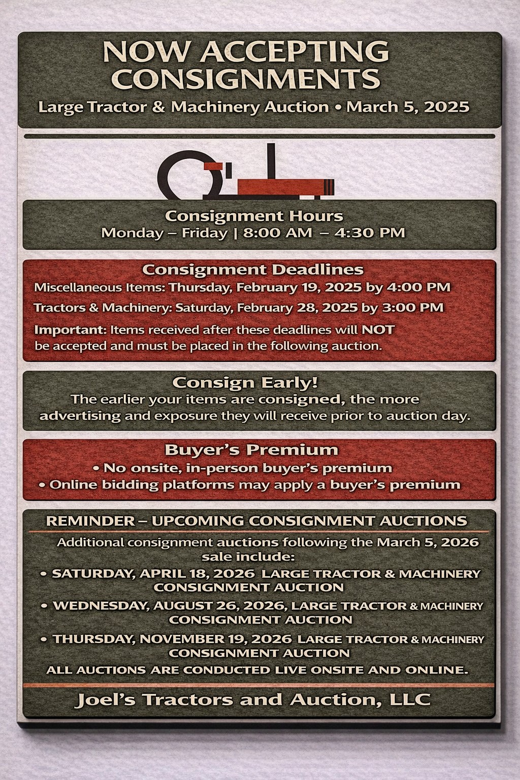 2025 © Joel's Tractors and Auction, LLC. All Rights Reserved. Site powered by